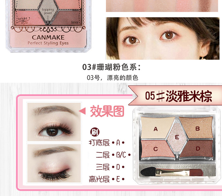 商品名称:日本canmake/井田 雕刻裸色五色宫格眼影盘